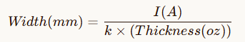 - Calculate Trace Width Based on Current: Use the formula for current carrying capacity. For MCPCBs, a standard approximation is:
